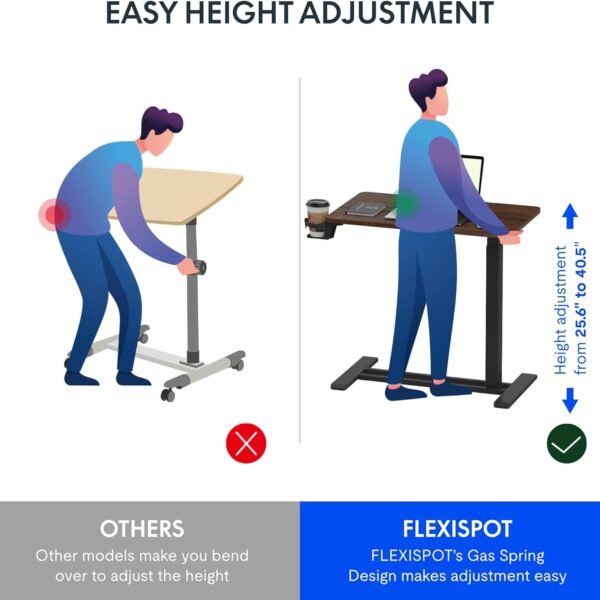 Ergonomic Design Use in Overbed Table : The spacious desktop (27.6″ W x 15.7″ D) fits almost any size laptop or tablet with keyboard. Making it a great choice for a home office or study. Say goodbye to long sitting and enjoy the health benefits of standing desk.