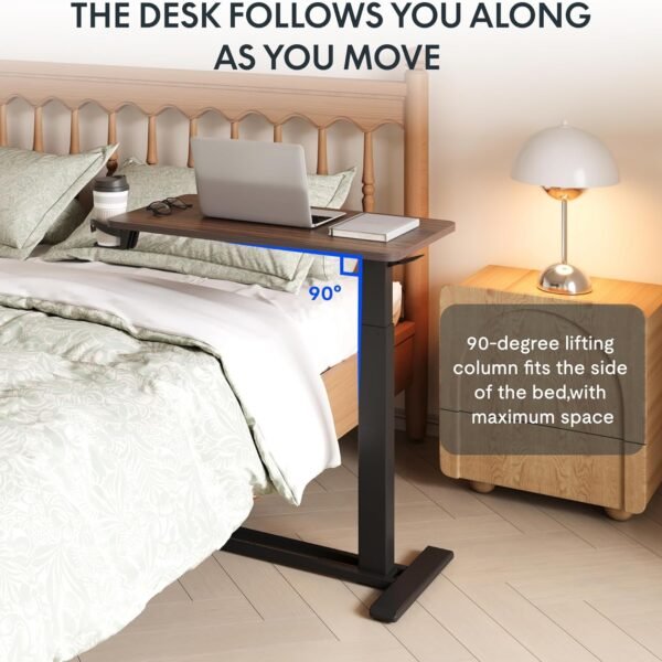 Easy to move around & space-saving: standing desk overbed table is equipped with 4 hidden casters to easily maneuver it anywhere you like. It??s an ideal portable workstation for any home or office! A low-profile base with smooth rolling wheels eases and tuck beneath furniture minimum 1.2″ high to save space.