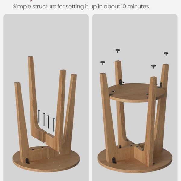 • ??Value Pack??: [Modern Vibe] The round tabletop, rustic walnut finish, and angled legs merge on this small side table, adding a clean, sleek modern vibe to your living space[2-Tier Storage] The tabletop is spacious to place an elegant flower vase, a cup of coffee, or a stack of books, and the lower shelf is perfect to display your mementos[Built with Strength] Made with quality particleboard and thick legs, this nightstand table boasts a stable, sturdy structure and can hold up to 198 lb in total[Space-Saving and Versatile] Sized at 15.8??Dia. x 19.7??H, this space-saving end table will be a lovely fit next to an armchair or couch, or make a drink table, a bedside table, or a beautiful plant stand[Quick Assembly] Set up your end table in about 10 minutes! Follow the clear instructions, connect the labeled parts to a simple structure, and you??re done!