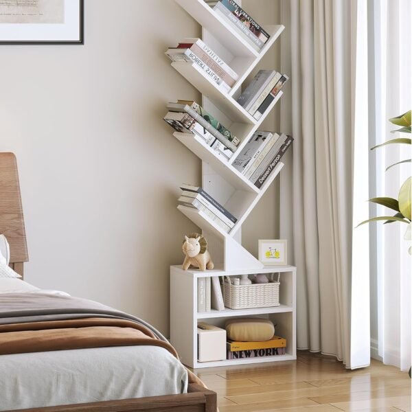 6 Tier Tree Bookshelf, Small Bookcase with Storage Cabinet, Modern Tall Narrow Bookshelves Organizer, Floor Standing Book Shelf for Bedroom/Living Room/Home Office/Corner, Rustic Brown